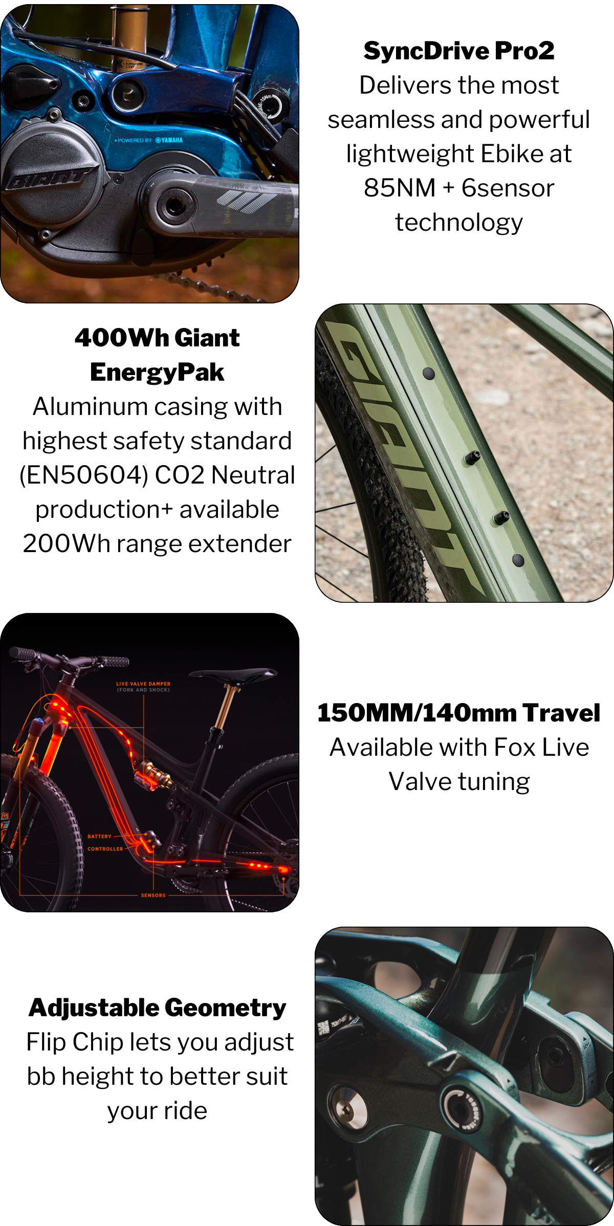 The Giant Trance Elite E+ family of electric mountain bikes takes you there. Shipped to your door ready to ride with platinum assembly. | | | | TRANCE X ADV E+ 0 $14,000 $11,500 Starting at $558/mo or 0% APR - Zipp 3MOTO WHEELS